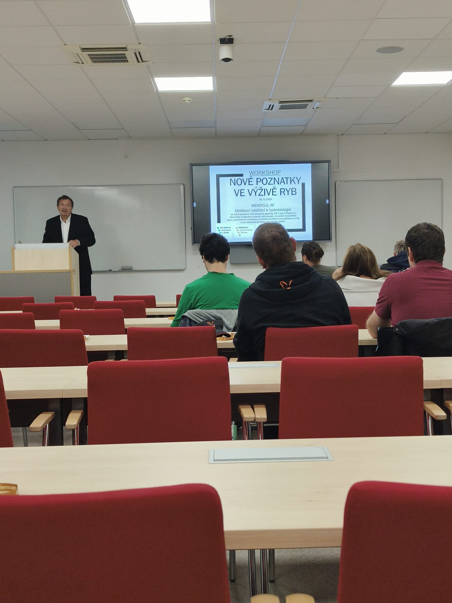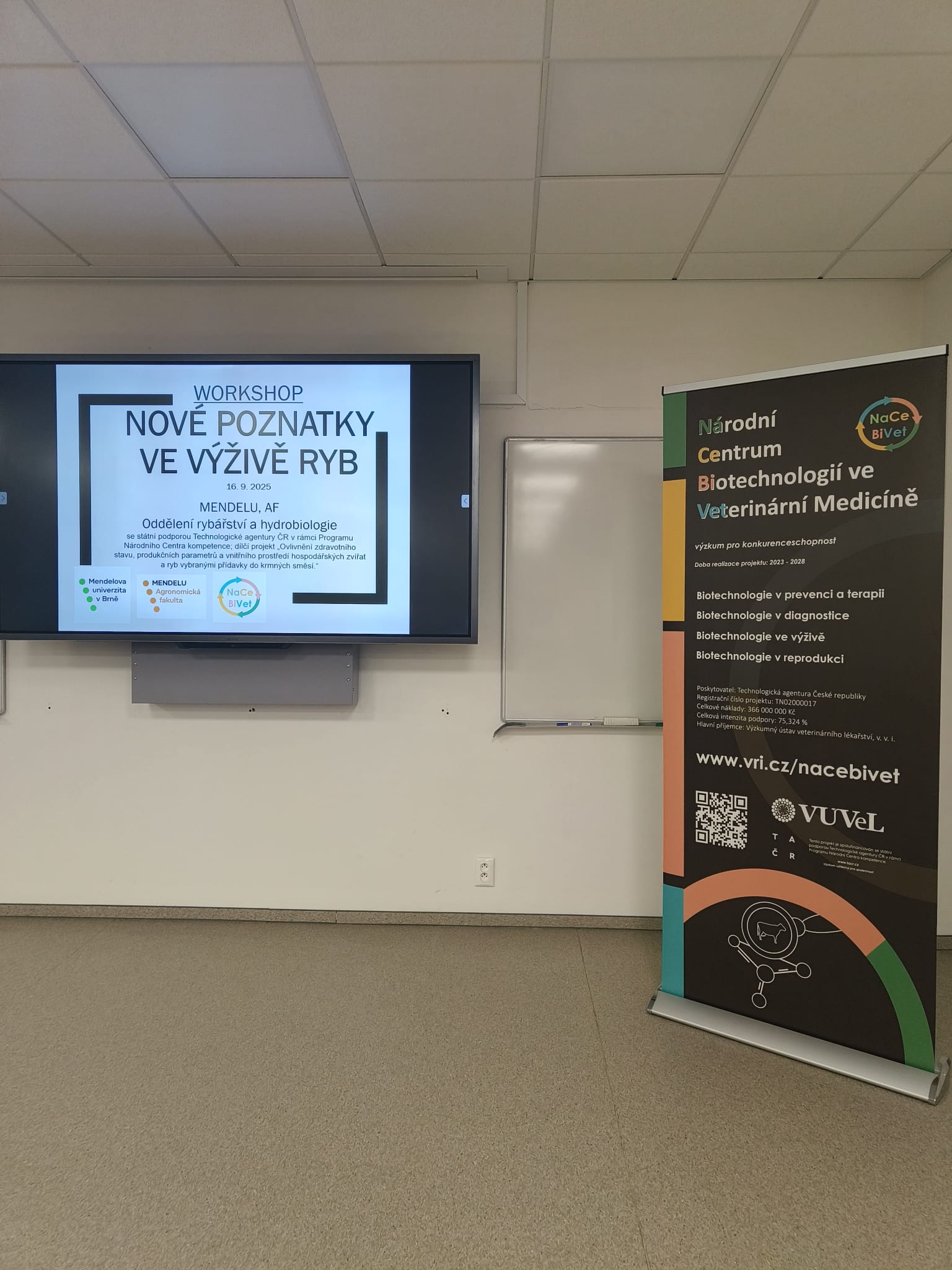 Dne 16. 9.2025 se na půdě Mendelovy univerzity v Brně uskutečnil odborný workshop s názvem „Nové poznatky ve výživě ryb – Současné trendy ve využití aditiv vhodných pro ryby“, který byl zaměřen na aktuální témata z oblasti výživy akvakulturních druhů a alternativních přístupů ke zlepšení zdravotního stavu ryb bez použití antibiotik. Akce proběhla v rámci projektu Centrum kompetence – Národní centrum biotechnologií ve veterinární medicíně (NaCeBiVet).